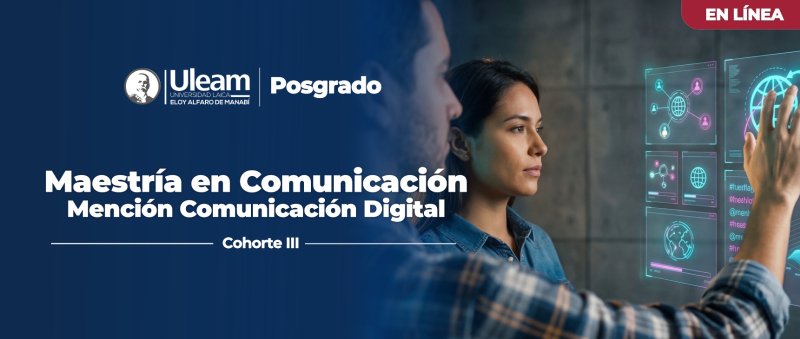 La Dirección de Postgrado, Cooperación y Relaciones Internacionales y la Facultad de Ciencias Sociales Derecho y Bienestar de la Universidad Laica “Eloy Alfaro” de Manabí, convoca al Proceso de Postulación y Admisión para acceder a Magíster en Comunicación, mención Comunicación Digital, tercera cohorte.