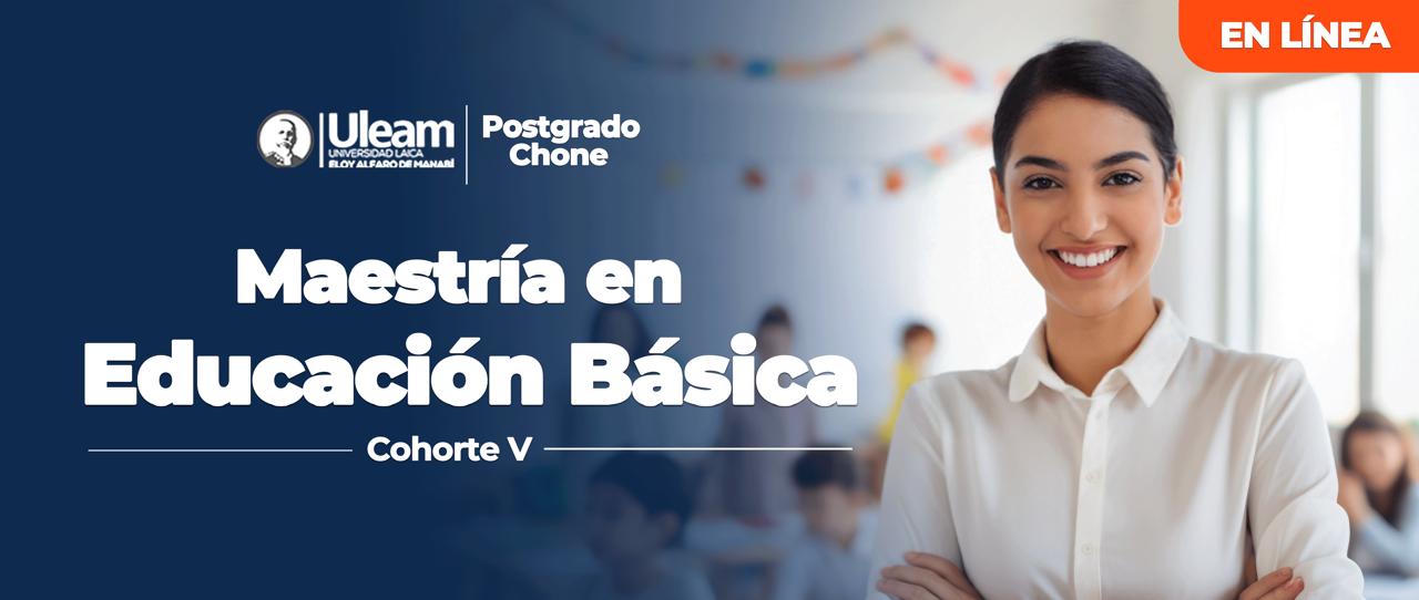 La Dirección de Postgrado, Cooperación y Relaciones Internacionales y la Facultad de Ciencias de la Educación, extensión Chone, de la Universidad Laica “Eloy Alfaro” de Manabí, convoca al Proceso de Postulación Maestría En Educación Básica, Cohorte V.y Admisión para acceder al Programa de
